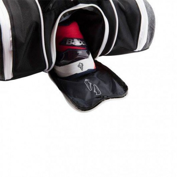 Чехол оснащен боковым отделением из плотного материала с вставкой из жесткой пластины, которая обладает противоударными свойствами и позволяет хранить в сумке как хрупкие вещи, так и теннисные принадлежности.